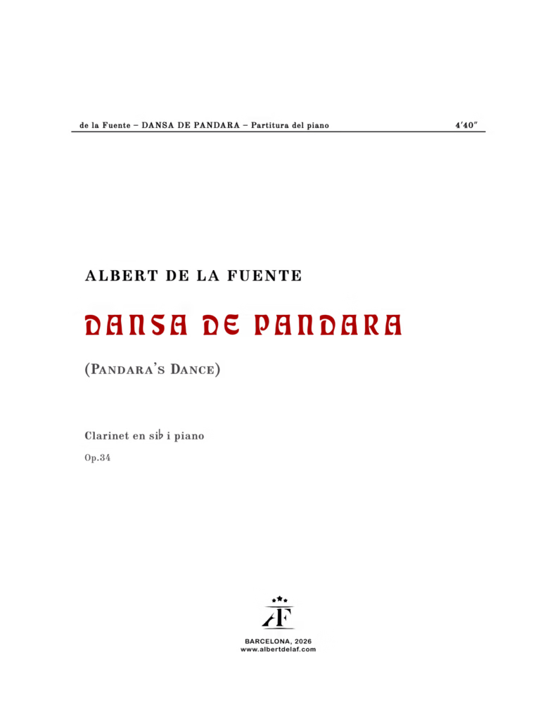 CHAMBER MUSIC DANSA DE PANDARA (“Pandara’s Dance”) Clarinet and piano Year: 2026 | Duration: 4’40” A TRAÏCIÓ (“Treacherously”) Violin and piano Year: 2025 | Duration: 4’40”Commissioned by the 2025 Música d’Ara concert season RONDÒ ALLA BARBARA Piano trio Year: 2024 | Duration: 4’40”Commissioned by the 2024 Música d’Ara concert season Violin and piano FAULA (“Fable”) Year: 2024 | Duration: 12’40”Sonata in four movements SCHERZO VOLANTE (“Flying Scherzo”) Violin and Piano Year: 2023 | Duration: 3’ RONDÒ ALL’AMERICANA Saxophone quartet Year: 2021 | Duration: 5’40” SEXTET 2 violins, 2 violas, 2 cellos Year: 2021 | Duration: 24’40”In four movements Learn more LUDUS SERIUS (“Serious Game”) Suite for string quartet Year: 2019 | Duration: 10’40”In four movements Learn more